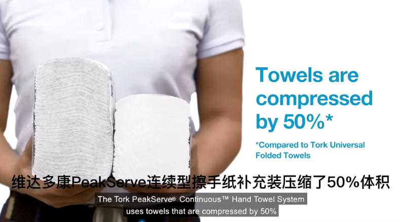 如若對標(biāo)普通擦手紙的同等體積計算,PeakServe擦手紙容量是普通擦手紙的2倍,有效提高現(xiàn)有內(nèi)嵌柜的內(nèi)部容量,同時使保潔人員一次填滿擦手紙系統(tǒng)僅需5分鐘甚至更少時間,有效節(jié)省時間維護成本達(dá)50%。